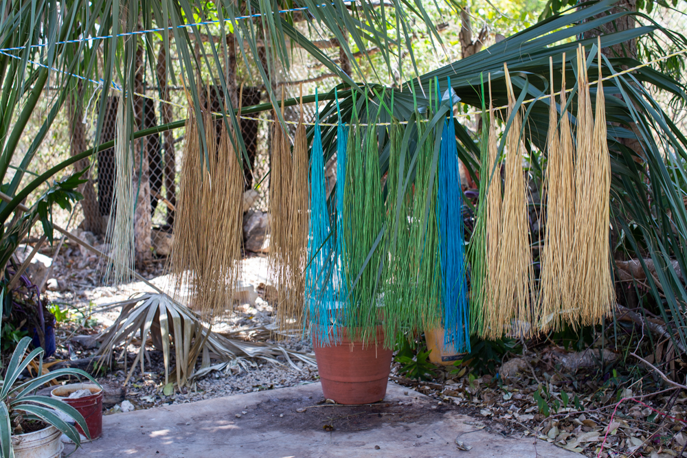 Estas artesanías se tejen en cuevas, por la humedad que en ellas se guarda, ya que esto favorece para que la materia prima se mantenga flexible al momento de tejer, de lo contrario el material se reseca y quiebra; otro dato muy importante es que el material al natural es de color beige claro y para dar color se tiñe con tinte natural a base de cortezas, hojas o raíces.